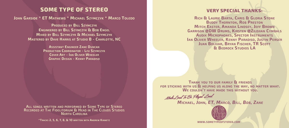 Some Type of Stereo, a 4-man rock band out of L.A., were looking to create their debut album. With commissioned art piece in-hand they wanted a CD Fold out with insert to go with it. It was only natural to lean into the ethereal piece and create a legible and thematic layout to go along with their grooves. Between The Heart and The Mind was born.