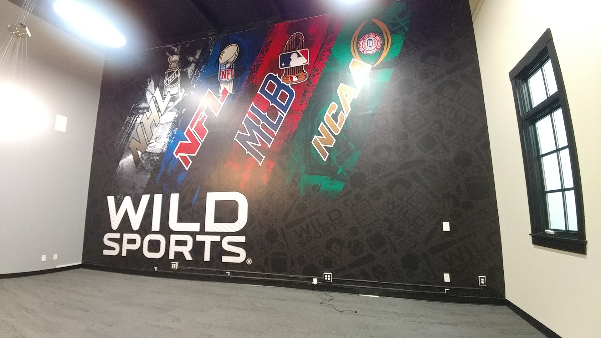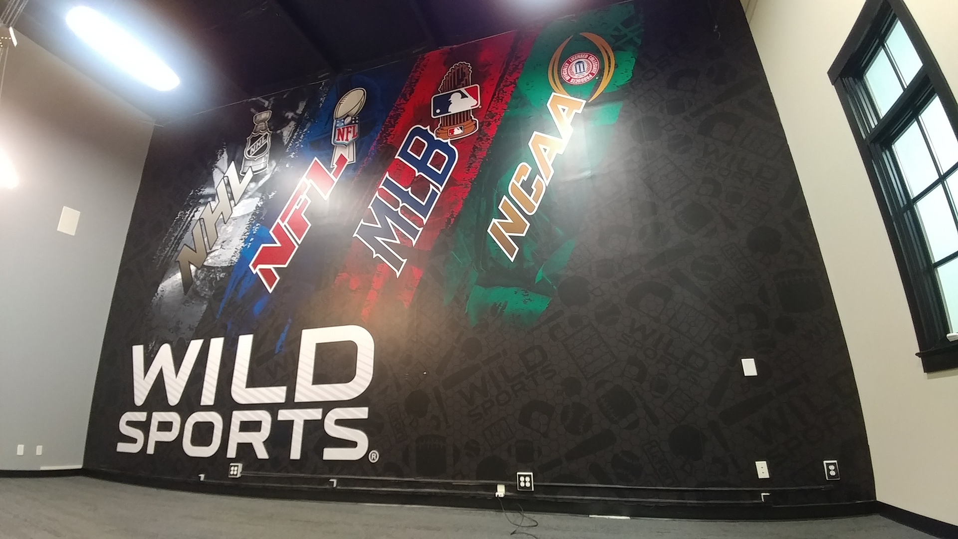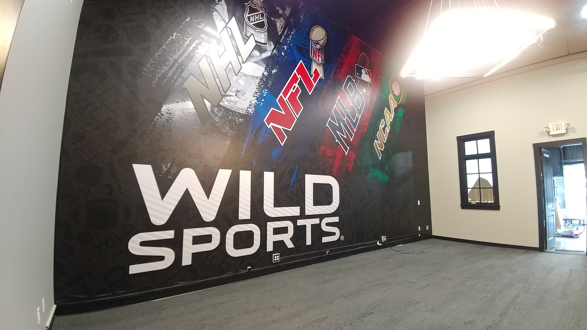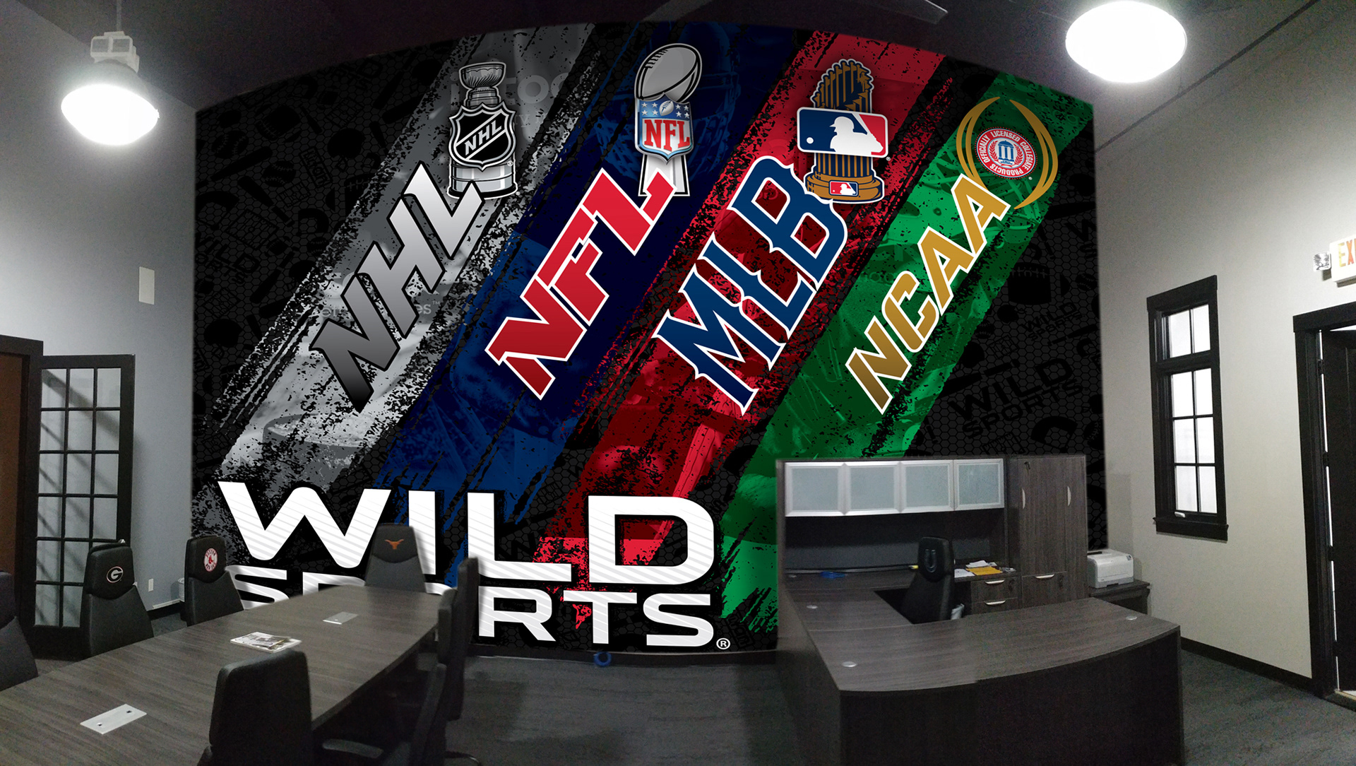 The North Carolina office for Wild Sports had a large bare wall. I designed a graphic that encompasses all of the Licenses we handled out of the office. It showcases the WS wordmark & League marks together. Installation by: Artisan Signs & Graphics