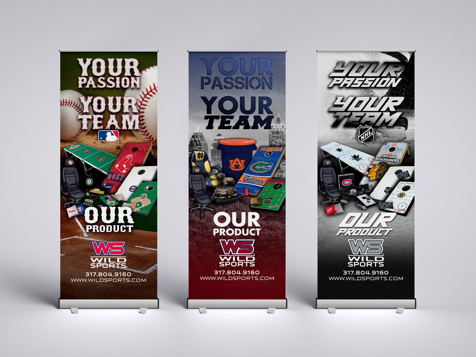 Wild Sports would periodically require Trade Show graphics and banners for display at League Licensing Summits. These Pop-Up Banners made perfect showcase companions to our product line displays.